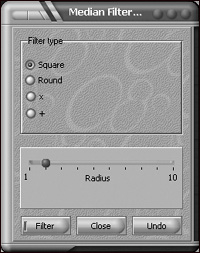 图2如果还不满意,可以进入程序中的“More tool”菜单,打开一个叫做“Median noise reduction”的工具(如图2),图像在消除马赛克后,还可以用它来进一步减少图像中的噪点。但从使用的效果来看,这个工具在去除图像噪点的同时会使一些图像细节变得模糊,因此对于一些细节要求较高的图片,在使用这个工具时,“Radius”的值不要设得太高。下载地址:http://www.viphot.com/SoftView/SoftView_17111.html
