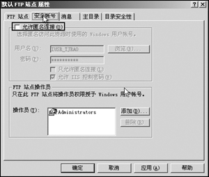 默认情况下,Windows 2000系统的FTP服务器是允许匿名访问的,虽然匿名访问为用户上传、下载文件提供方便,但却存在极大的安全隐患。用户不需要申请合法的账号,就能访问你的FTP服务器,甚至还可以上传、下载文件,特别对于一些存储重要资料的FTP服务器,很容易出现泄密的情况,因此建议用户取消匿名访问功能。