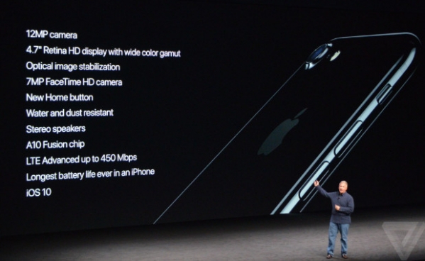 4.7英寸全高清屏幕,IOS 10,全新的耳机,全新的Home键,A10处理器和全新的GPU,全新的Lighting数据接口