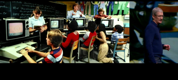 第三个事情,关于iTunes U,也就是关于教育领域的一些事情。苹果在全球100多个国家的教育领域应用苹果的IOS设备。