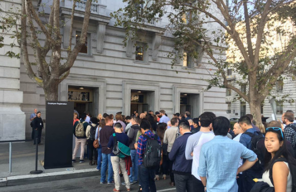 现场记者看到了蒂姆·库克,以及还有一对巨大的无线Beats耳机迷幻身子。显然今天会有新款iPhone 7 Beats专属耳机。