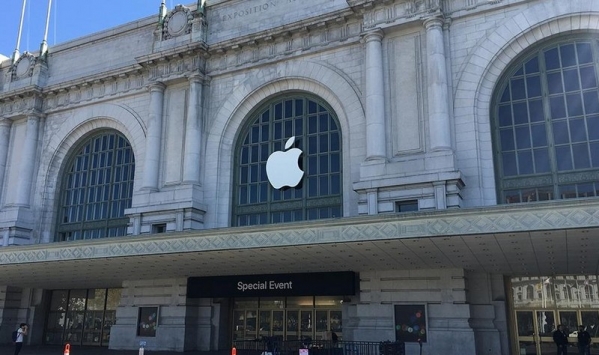 目前加州苹果总部库比蒂诺市政礼堂已经开始装修咯!下面是发布会场馆现场图。