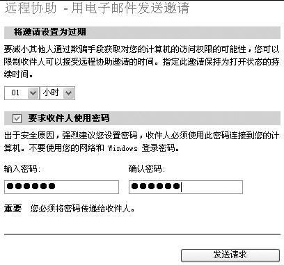 通过电子邮件发送邀请,只要在“使用电子邮件”的邮件地址栏输入果冻的邮件地址,然后点击“邀请此人”,输入邀请函的内容,在设置窗口中对邀请的有效期和密码进行设定后,便可以点击“发送请求”按钮调用Outlook Express来发送邀请函了(图3)。