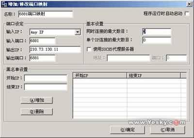 根据输入端口和输出端口一一对应的原则,你还需要在“输出端口:”文本框中输入“6881”;设置好上面的参数后,单击“确定”按钮,BT软件6881下载端口的映射关系就建立好了;