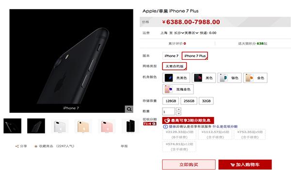 2、通过苹果在淘宝天猫的官方旗舰店进行预约付款购买新款的iPhone 7(苹果天猫官方预定预约购买地址:点这里)