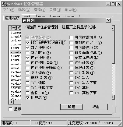 Windows任务管理器”窗口中“查看”下的“选择列”菜单项,然后单击选中“PID”(进程标识符)复选框(如图2所示)。