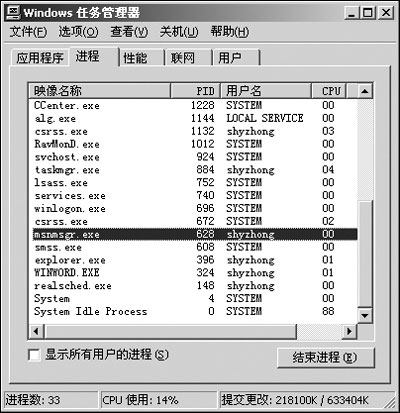 既然知道系统中有个PID为628的进程,那么就来看看它究竟是谁。大家都知道,查看系统进程可以使用同时按“Ctrl+Alt+Delete”组合键的方法,在打开的“