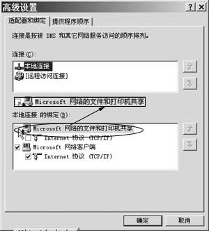 网络和拨号连接”对话框的“高级”菜单,选择“高级设置”命令,进入高级设置对话框(如图3),在出现的画面中的上部选择所需的连接,下部取消“文件和打印机共享”项(保持空选),即可禁止这几个端口。
