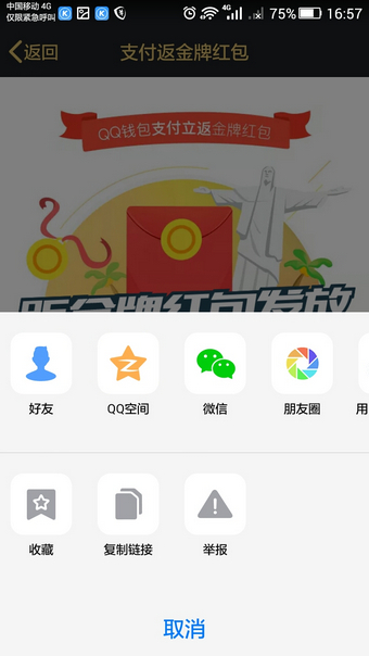 3.8月6日9:30~24:00用户在QQ钱包商城完成交易(QQ红包、转账除外),即可获得金牌红包1个;