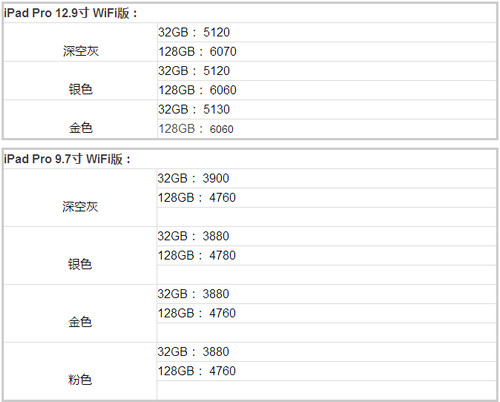 iPad Air2/mini4、iPad Pro港行报价(2016年8月5日)