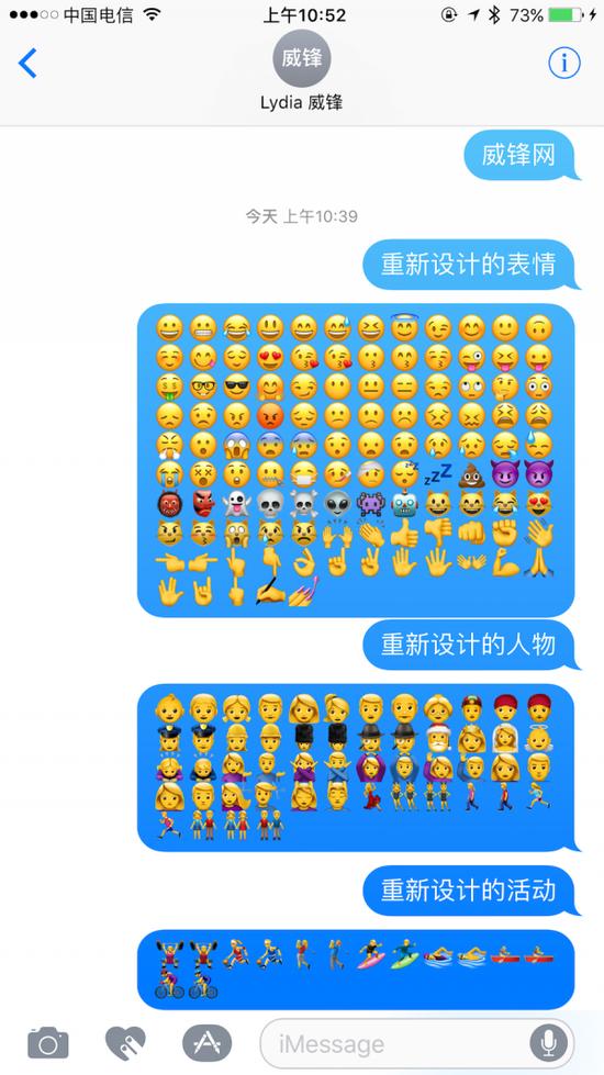 苹果在 iOS 10 新增了不少的表情和人物。尽管iOS原生自带的表情符号并不是很符合年轻用户的口味,但 iOS 10 短信中的“一键替换表情符号”这一功能将会让 iOS 的原生表情更加实用。