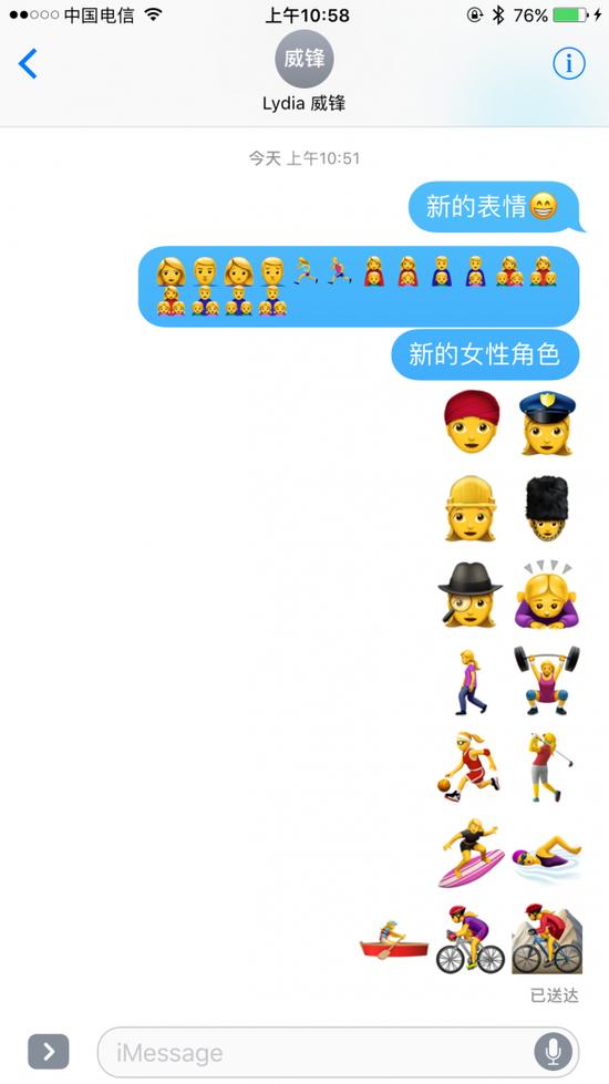 苹果一直强调多样性和种族性别平等,在设计表情符号的时候也是如此。在 iOS 10 将看到不同性别和不同肤色的表情,那么在昨天发布的 beta 4,也就是今天发布的 Public Beta 3 中,苹果在表情符号上继续下功夫,对 100 多个表情和人物进行了重新设计,并新增了将近 40 个新的元素。由此我们看到,这些表情符号不仅照顾了不同肤色的用户,还有同性恋用户。也为女性用户新增了职业元素,秉承男女平等的原则。另外,还增加了单亲妈妈或者单亲爸爸的元素。