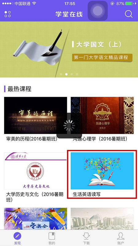 1、下载学堂在线app后,在主界面选择你想要学习的教程点击进去。