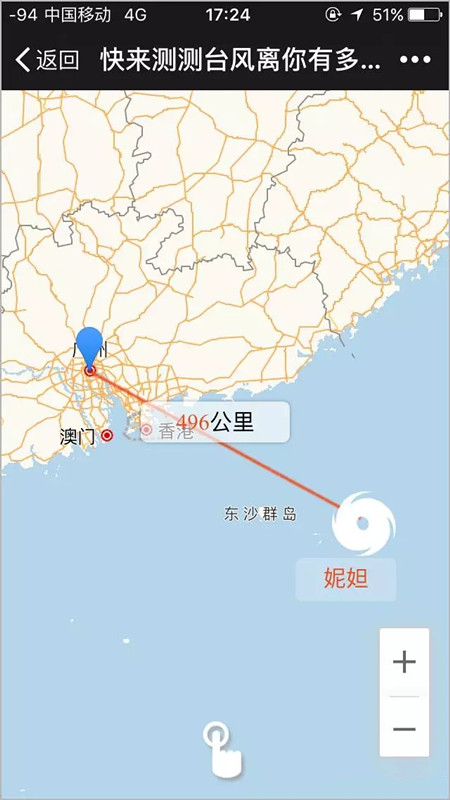 这样你就可以看到台风与你的实时距离啦!