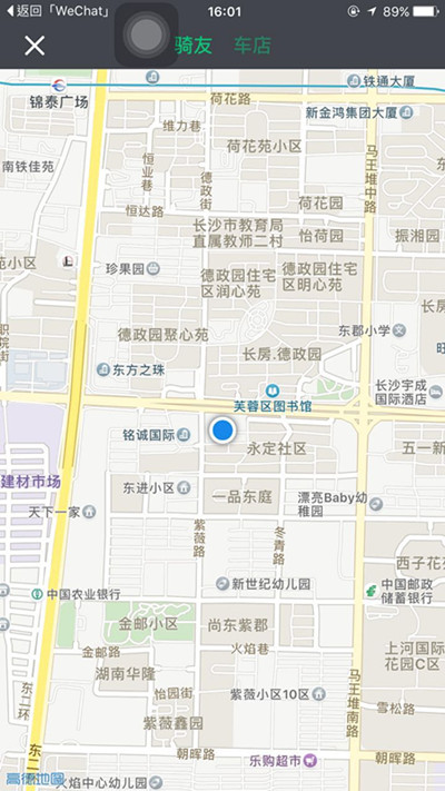 5、点击左下角的商铺,骑记提供的周边功能,可以帮助车友找到在身边经过的车友,也可以帮助车友找到附近的车行,这给车友提供了巨大的便利,比如在骑行过程中实时掌握同伴的方位;每到一地如需修车通过软件迅速找到距离最近的车店地址;发生意外情况时向平台上附近的车友广播呼救等等