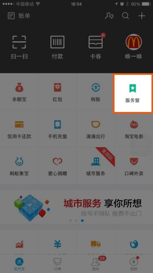 1、你必须为支付宝用户,打开支付宝APP,点击服务窗