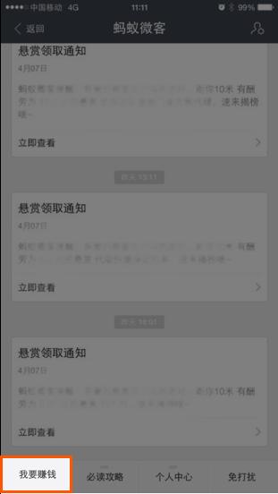 3、进入服务窗,点击我要赚钱,进入蚂蚁微客