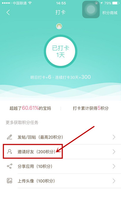 5、打卡界面,点击邀请好友——分享并邀请好友——选择微信。