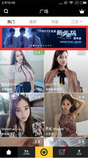 1、打开花椒直播,在首页幻灯片可以看到“TFBOYS超少年密码发布会”的图片,点击进入即可;