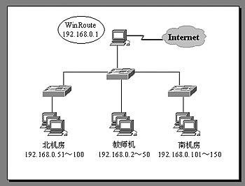 笔者所在学校使用代理服务器软件WinRoute共享上网。在此之前曾试用过CCProxy、WinGate、SyGate等各类代理服务器软件,在使用过程中感觉到以上代理服务器软件各有特点,但WinRoute功能更为强大,具有管理功能完善、运行稳定、缓存读取速度快、客户端应用程序不必单独设置等特性。笔者在使用过程中不断总结经验,发现对WinRoute进行相应配置后,可以实现客户端全自动管理,使校园网终端在该上网的时候自动上网,不该上网的时候自行断开,有特殊需求的机器(教师机)可设为永久在线。笔者所在学校