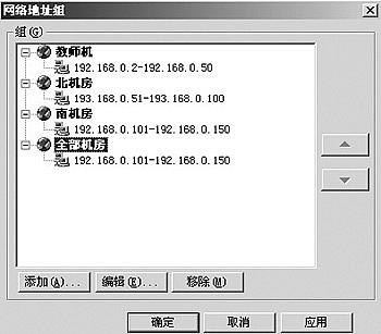 (3)重复上一步,设置周一的3~4节为9:40~11:50,5~6节为14:30~16:10。 (4)参照以上步骤设置周二到周五的时间表。 (5)设置课外活动时间表(16:20~17:30),时间有效于星期一到星期五。 (6)设置双休日时间表(8:00~23:00),时间有效于星期六和星期日。 (7)设置完成后出现如图6所示界面。 3.设置地址组(1)依次点击“设置→高级→地址组”。(2)点击[添加]按钮,分别设置教师机、北机房、南机房、全部机房的