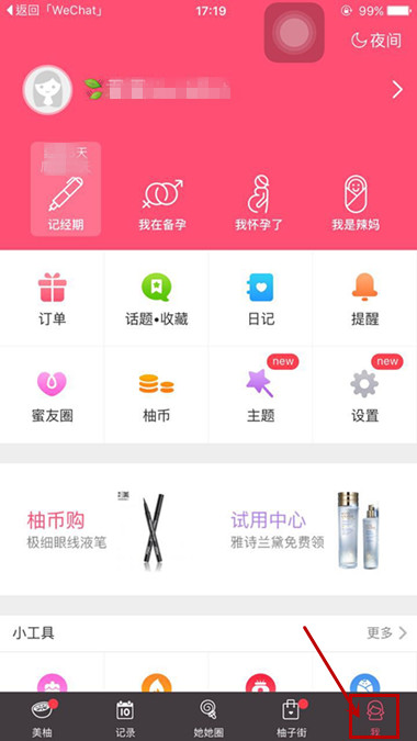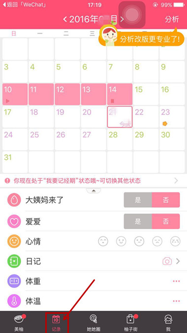 1、首先我们先打开这款美柚APP,然后我们可以看看这里有四个选项,小编是未婚人士就一“我要记经期”为大家示范,羞羞~~