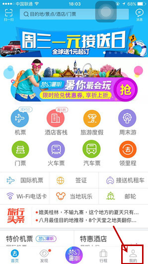 首先打开阿里旅行客户端,点击【我的】