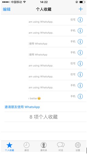 1.目前whatsapp仅支持手机注册,注册之后允许访问通讯录,找到“个人收藏”,小编这里选择从“个人收藏”邀请而非直接从“通讯录”邀请是因为这种邀请方式可以批量邀请,从“通讯录”中邀请只能单个邀请,选择你合适的方式进行邀请。