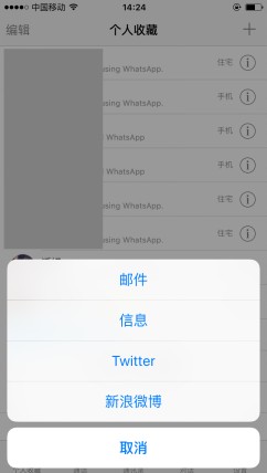 2.然后会读取你的通讯录,有4中邀请方式,小编这里选的是“信息”的方式邀请。“邮件”方式会自动帮你筛选有邮箱地址的联系人;“Twitter”是发送一条邀请下载推文;“新浪微博”则是发送一天邀请下载微博。选择你自己合适的方式邀请朋友。