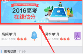 1、打开百度高考APP,在首页上方滚动图片中可以看到2016高考在线估分,然后点击进入;