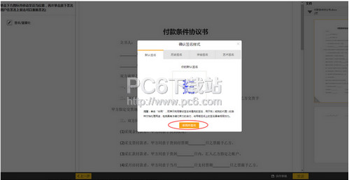 5、确定签名盖章处后,选择签名样式后,点击【采用并签名】;