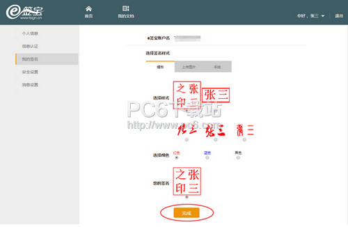 4、点击【添加签名】进行签名创建,默认创建模版印章,选择模版样式后,点击【完成】完成印章创建;