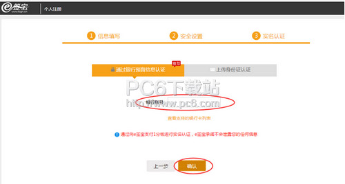 4、选择通过银行预留信息认证,输入银行账号,点击【确认】;