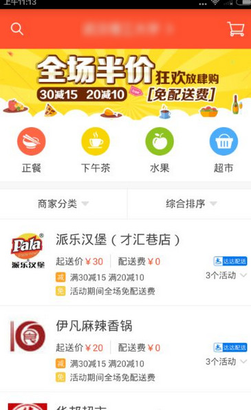 1.进入到派乐趣软件中,自动定位就可以选择你周边的美食了,然后你就可以点餐啦~!