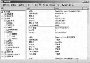 图2另外,在所有系统中,获取MAC地址还有另外一种较特别的方法,这种方法无须在命令行提示符下键入命令,无须牢记复杂的命令。只要鼠标轻点几下即可。方法是:鼠标依次点击“开始→所有程序→附件→系统工具→系统信息”在“系统摘要”下,展开“组件→