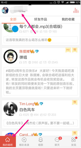 1.打开唱吧,点击左下角的【我的唱吧】,接着点击上方的唱吧昵称