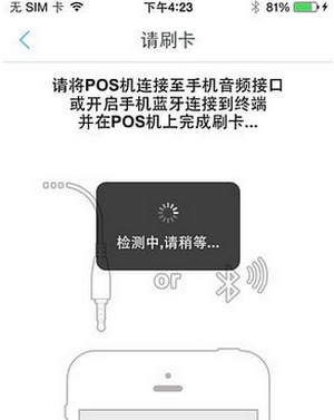 当你需要刷卡的时候,请将pos机连接到手机音频接口或开启蓝牙连接到终端,将银行卡在pos机上完成刷卡就可以了。
