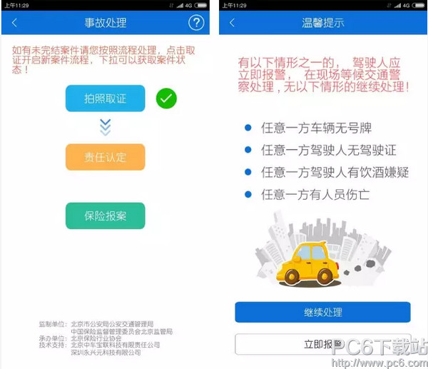 “事故e处理”模块已于2015年11月率先上线应用。发生交通事故后,当事人可通过APP拍照完成自主取证;通过自行协商或交警远程指导完成责任认定;通过APP完成在线保险理赔报案。交警部门和保险部门可以通过官方平台共享事故信息。目前北京交警APP(首期)中的“事故e处理”模块是2.2版本,较之前的2.1版本增加了视频取证、当事人信息二维码自动识别以及驾驶证、行驶证信息部分验真功能(软件注册时填写个人信息后才可以完成验真)。原“事故e处理”手机APP升级后,自动变更为北京交警APP(首期)。通过软件的不断升级更新,力求为当事人提供更便捷和更人性化的服务。