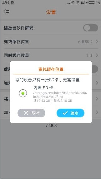 3、然后用户就可以查看到缓存的位置,如果有多张SD卡还可以更换位置。