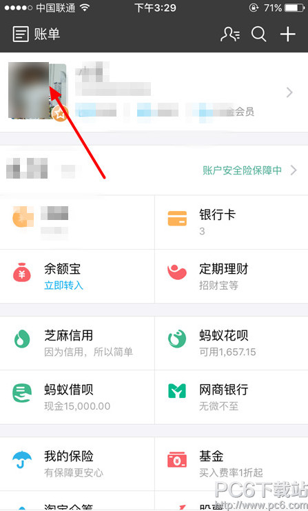 一、打开支付宝客户端,切换至【我的】界面,点击一下上方的个人头像