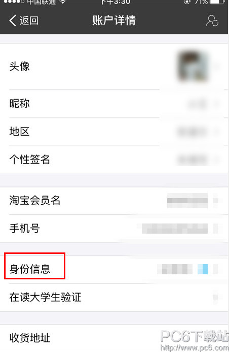 三、在账号详情界面下方会看到【身份信息】一栏,点击进入