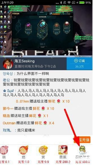1、用户进入龙珠直播的礼物页面后,找到最后一个礼物就是召唤神龙了,召唤神龙需要999个元宝