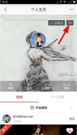 1、用户进入啪啪音乐圈的个人中心后,点击“关注”