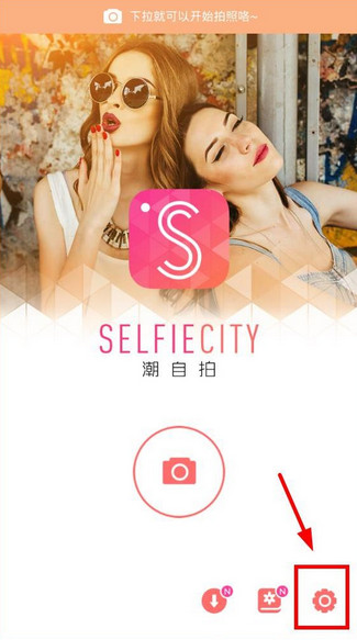 1、打开潮自拍app,选择右下角的“设置”按钮;