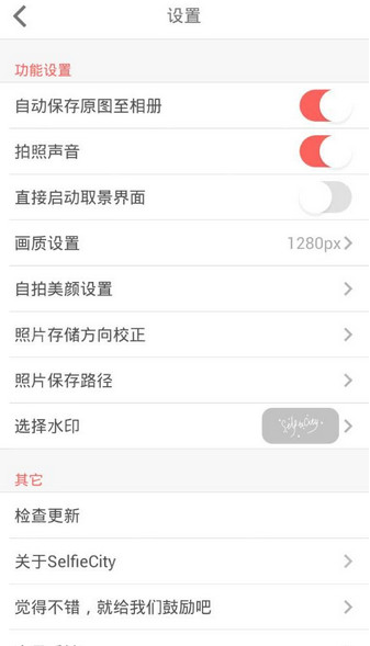 5、在首页右下角的“设置”按钮中你可以对自己的潮自拍app进行更多功能设置,让你的相机功能更系统、更全面,更加符合你的使用习惯哟。