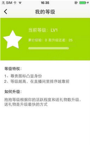 2、然后点进去就能看到你的等急了!等级是尊贵图标凸显身份,等级越高,在直播间里的排序越靠前!