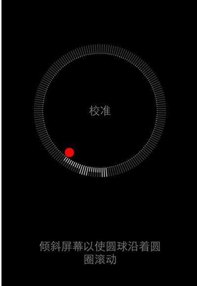 3.【校准】的操作就是将手机持水平放置,然后向四周轻微的转动屏幕,让屏幕中的小点点绕四周移动。