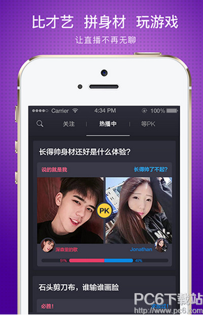 洋葱TV特别引入双人直播的PK模式:谁的得赞数高,谁就能赢得本场比赛的胜利,而获胜的一方将获得双方在本场双人直播的所有收益。
