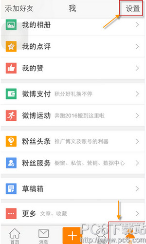 1、打开手机的新浪微博的客户端,在个人中心中找到设置的选项。
