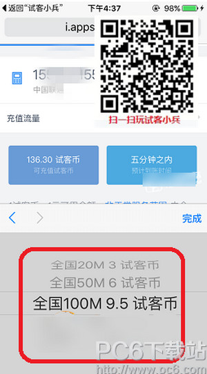 试客小兵试客币可以给手机充值流量,1试客币=1元可用余额3试客币充值全国20M流量6试客币充值全国50M流量9.5试客币充值全国100M流量14试客币充值全国200M流量28试客币充值全国500M流量。